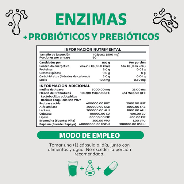 Estas cápsulas de enzimas digestivas y probióticos mejoran tu digestión al eliminar la pesadez y la inflamación abdominal. Disfruta de tus comidas sin preocupaciones.